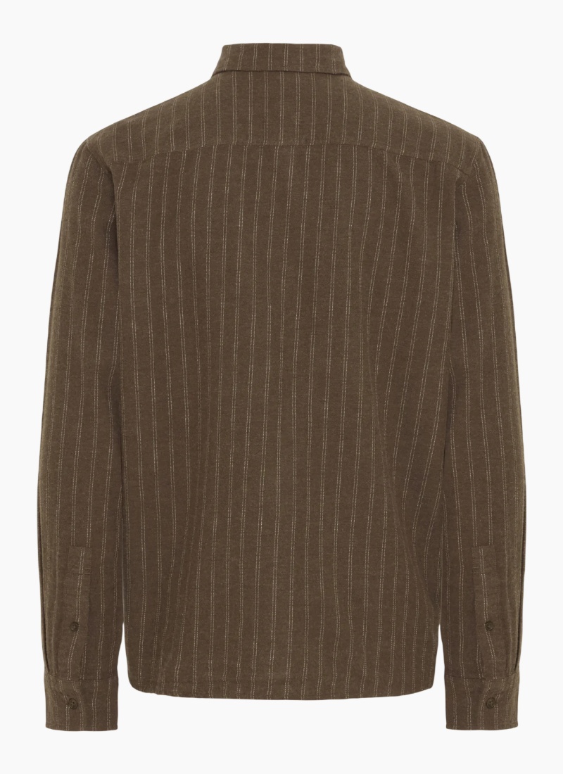 - A refined brown striped shirt cut from 100% Cotton flannel