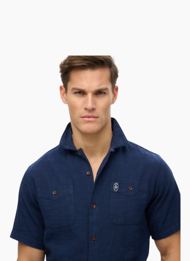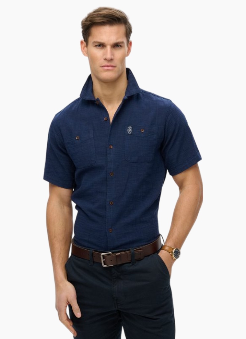 Introducing the Short Sleeve Textured Shirt from Superdry. A warm-weather staple with a tactile slub weave and thoughtfully finished details.