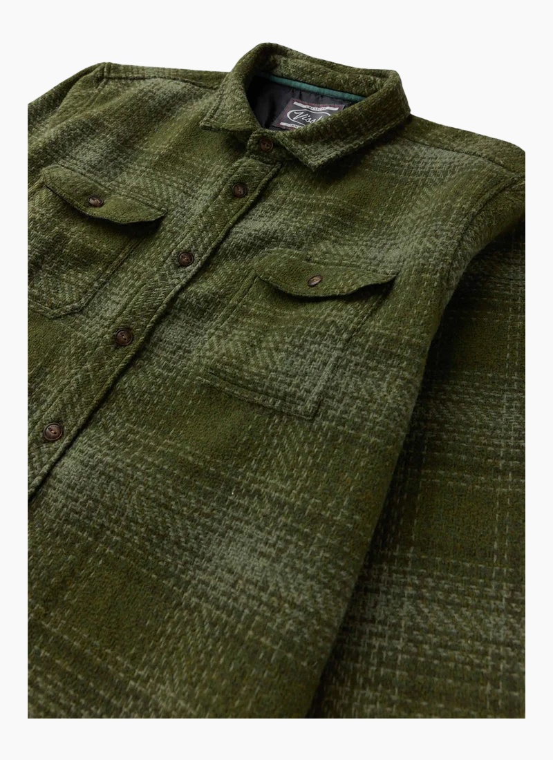 The Mind Games flannel pushes boundaries with recycled polyester and wool blend construction that delivers exceptional warmth and conscious comfort. Plaid patterns create visual intrigue while the sewn-in center front placket and button-down chest pockets maintain functionality. Contrast taffeta lining at the inside back yoke elevates the experience, enhanced by heavy garment washing for instant authenticity. Ultra Heavy Weight Ls Plaid Recycled Polyester/ Wool Flannel. Sewn In Center Front Placket With Button Down Front Chest Pockets And Contrast Taffeta Lining At Inside Back Yoke. Heavy Garment Wash.