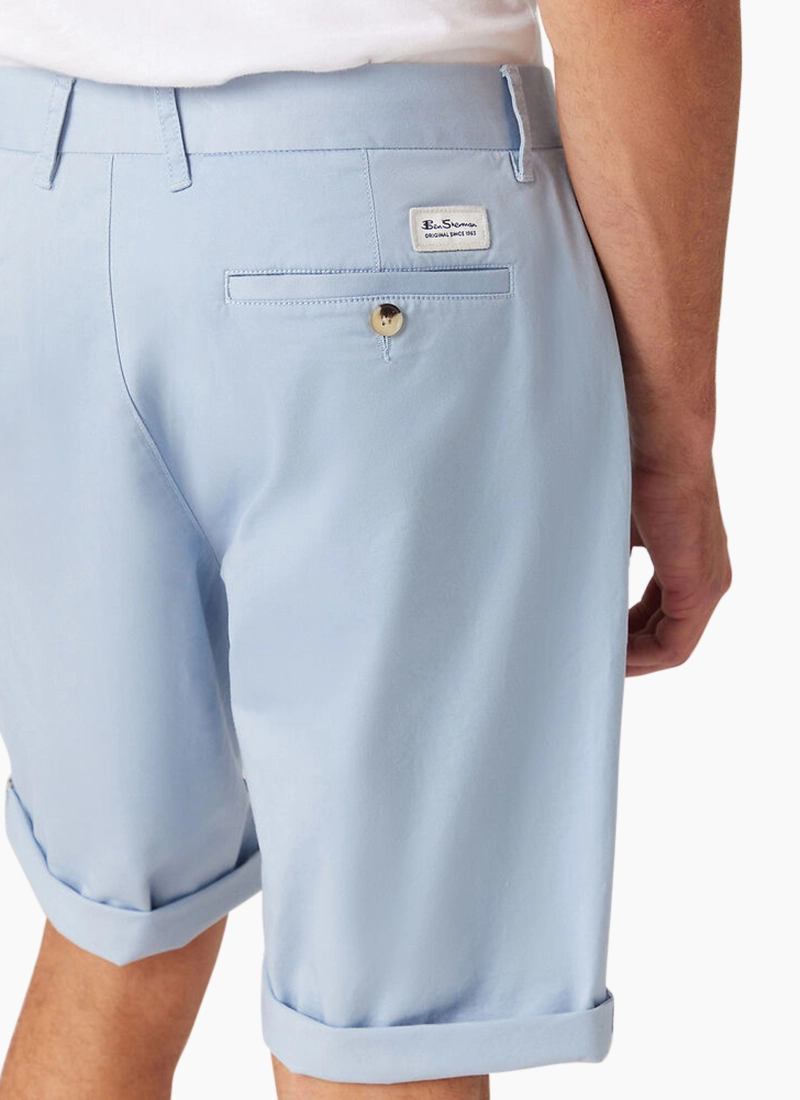 An update to our slim fit chino short, made better with a performance cotton and nylon blend that allows for a super soft touch and higher level of comfort. This chino has a small amount of stretch in both the base fabric and the waist band for even more flexibility. It’s cut in a modern slim leg with classic chino styling, including welt back pockets and mod stripe detailing.
