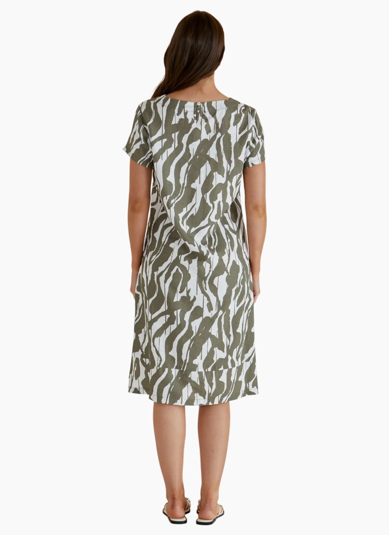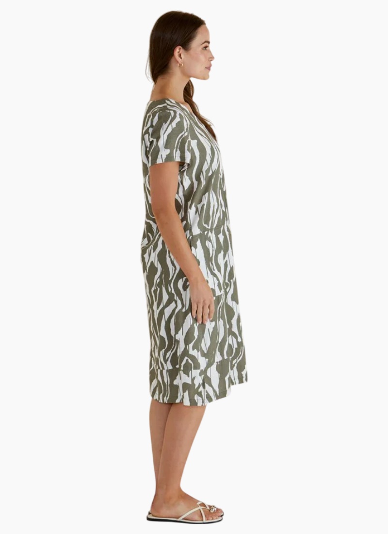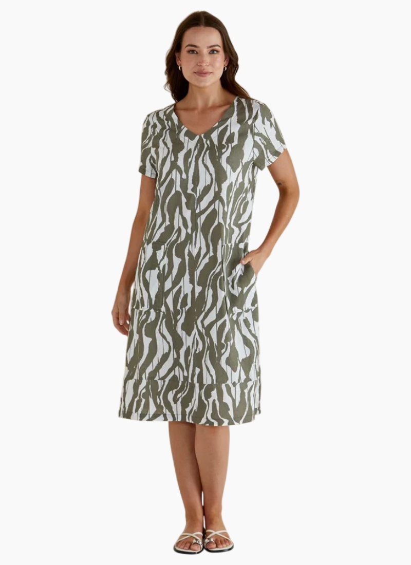 The Elwood Dress blends breathable viscose/linen fabric with a relaxed, oversized fit for ultimate comfort. Its V-neckline and side splits add a refined, elevated edge to this classic silhouette. Pockets enhance its practicality, making it an easy, transeasonal dress that effortlessly transitions through the seasons.