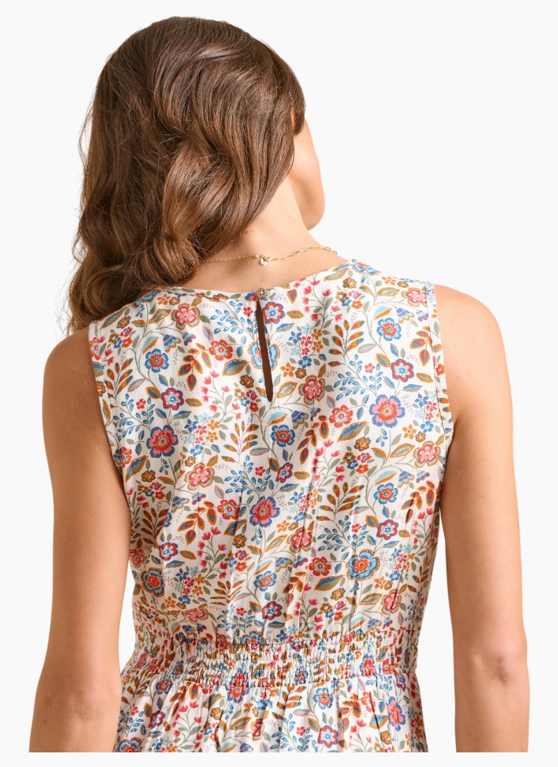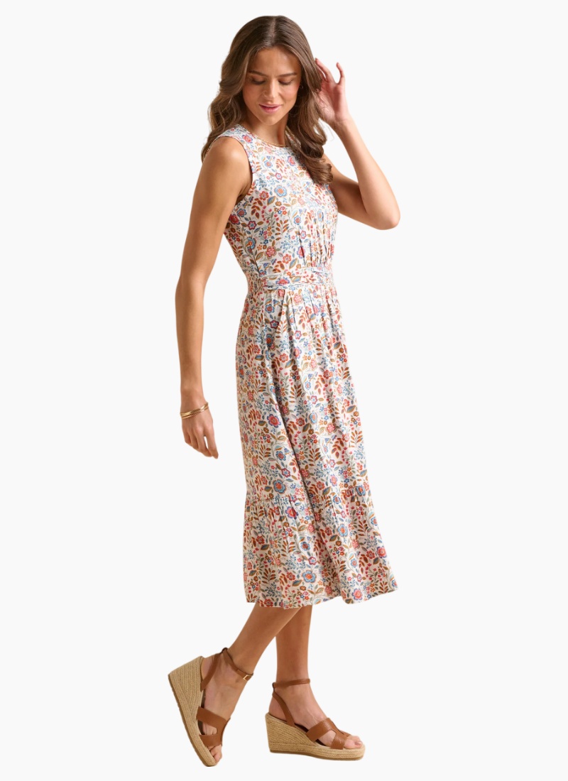 - Sleeveless midi silhouette with a defined waist and gentle gathered skirt, perfect for Casual/Day Dresses