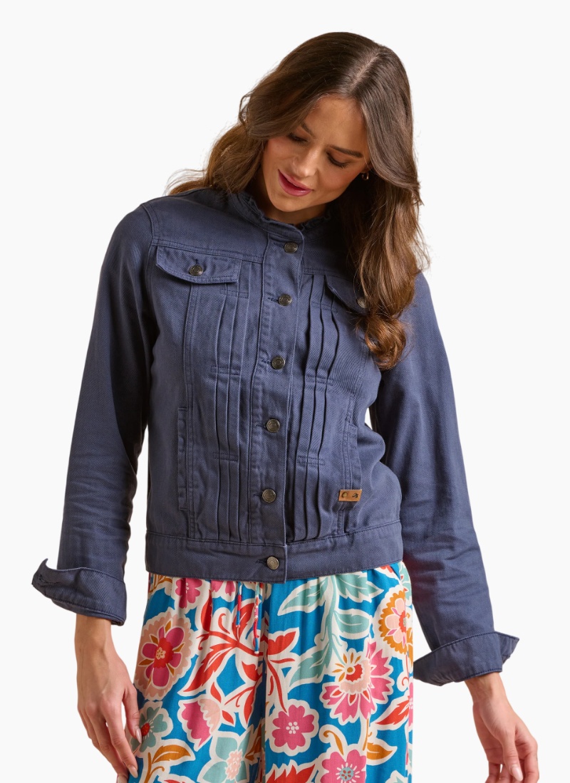Introducing the Brakeburn Navy Ruffle Neck Jacket — a refined everyday jacket with feminine ruffle detailing at the collar that lifts any outfit.