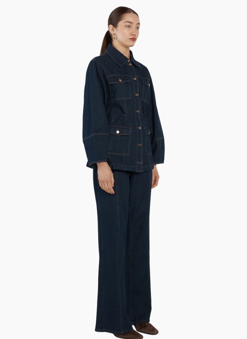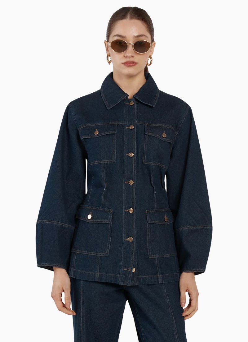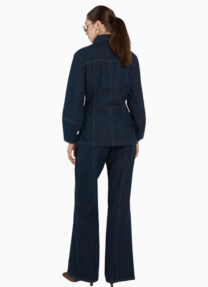 The Wren Denim Sculpted Jacket redefines classic denim through tailored precision. Structured fabrication and contrast hardware lend a polished edge. Utility-inspired patch pockets add subtle detail. A sophisticated trans-seasonal layer designed for effortless refinement. -Structured denim fabrication -Button-through front with contrast hardware -Utility-inspired front patch pockets -Shaped long sleeves with wide cuff finish