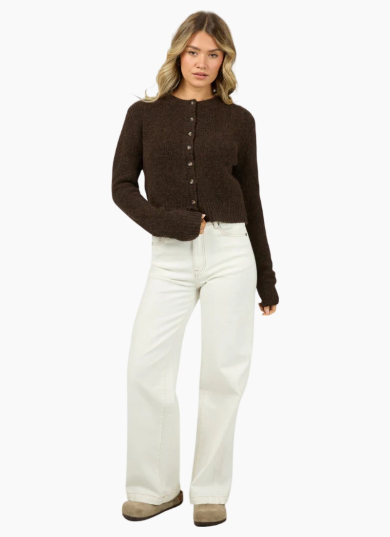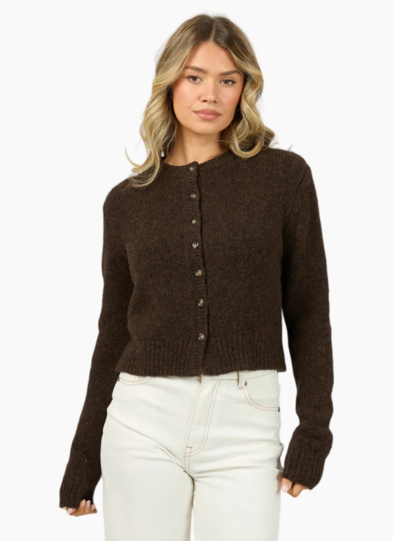 Stay cosy in effortless style with the Bayside Cardigan by All About Eve. In a rich brown hue, this soft knit features a relaxed fit and easy open-front design — perfect for layering over denim or dresses. A timeless essential you’ll reach for season after season.