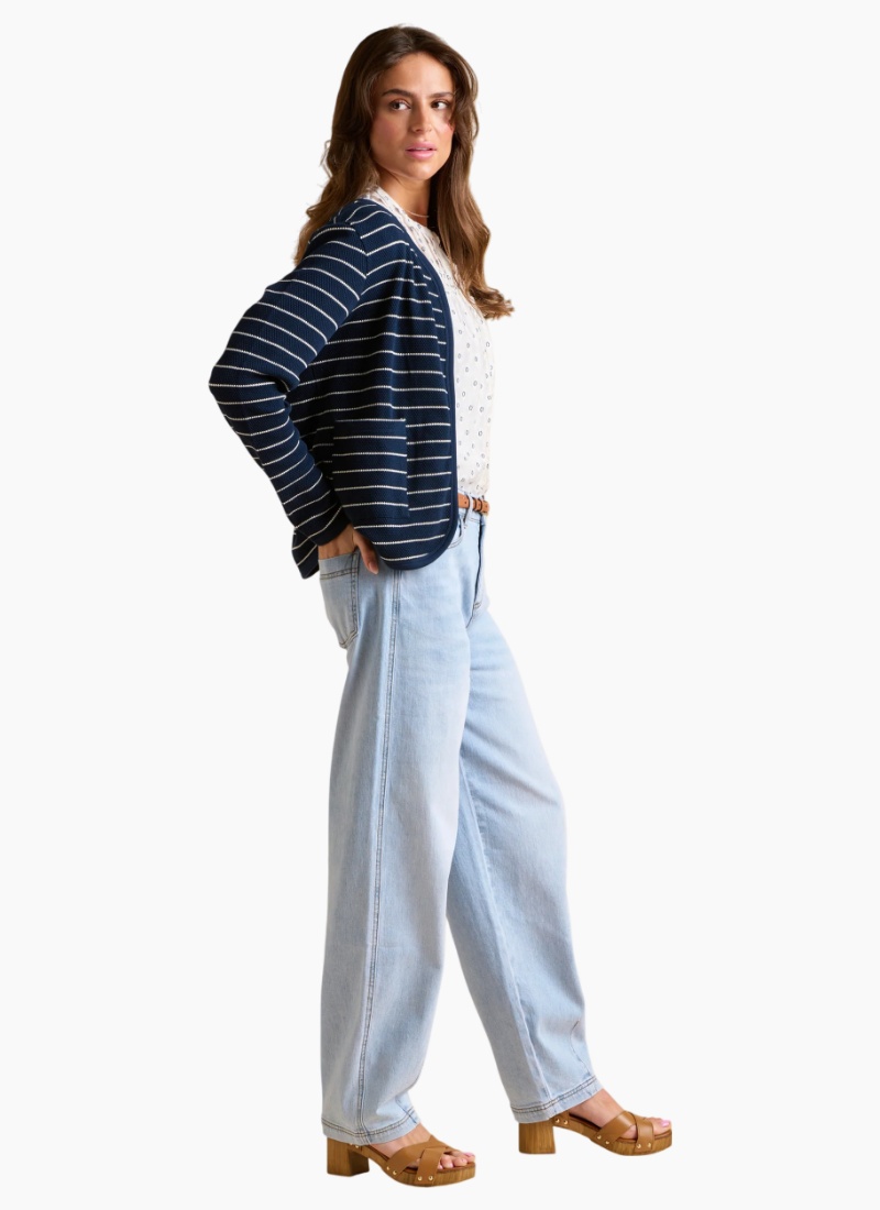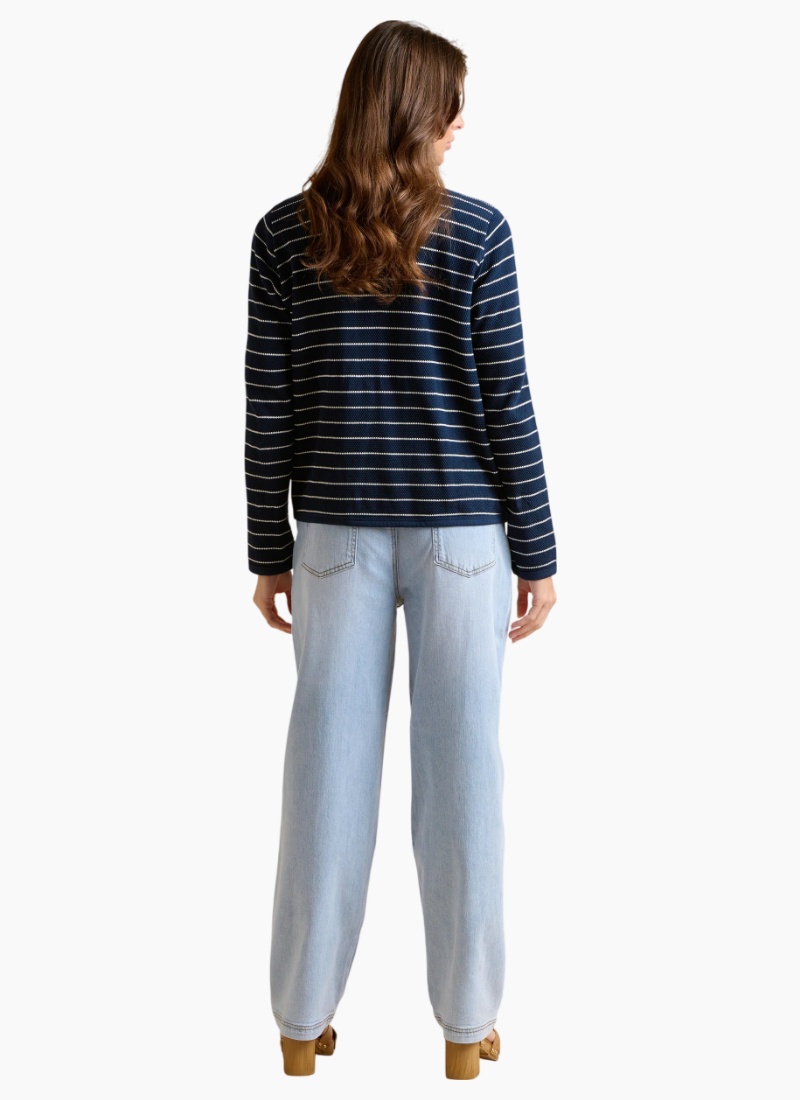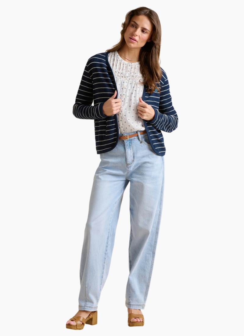 A simple staple piece that makes a statement. With popcorn textured fabric, classic stripes, and the iconic Brakeburn logo, this sweat jacket is ideal for hosting dinner in the garden or layering over a white top, cream jeans, and chunky trainers for a day in the town.