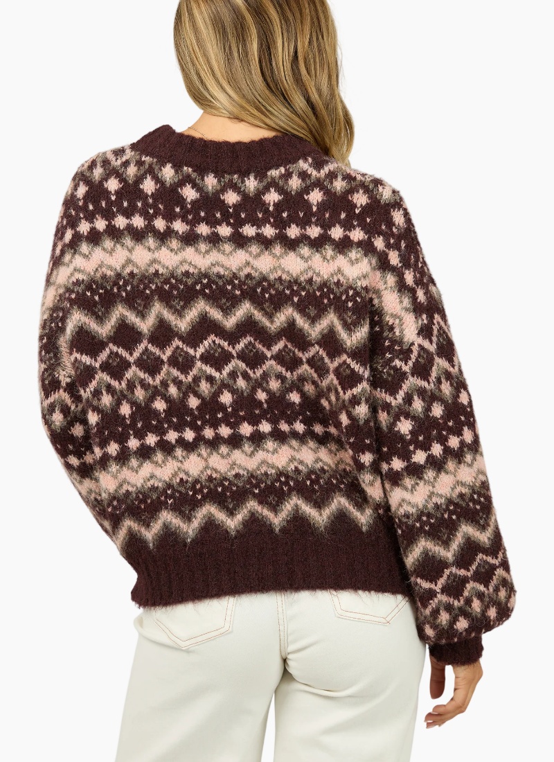 The Fair Haven Knit is designed to bring warmth and texture to everyday dressing. Crafted in a relaxed fit, it offers an easy, comfortable silhouette that’s perfect for layering through cooler months. The soft fancy knit features a rich, multi-tonal pattern that adds a vintage-inspired feel. Finished with ribbed cuffs, hem, and neckline, this knit balances comfort with style. Easy to pair with denim or tailored pants, the Fair Haven Knit is ideal for relaxed weekends and effortless, seasonal outfits.