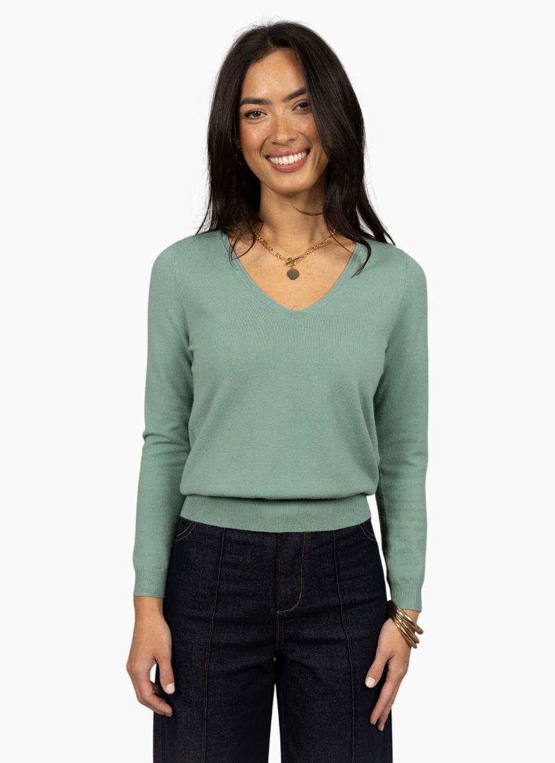 - Classic V-neck silhouette with ribbed cuffs and hem for a neat, polished finish