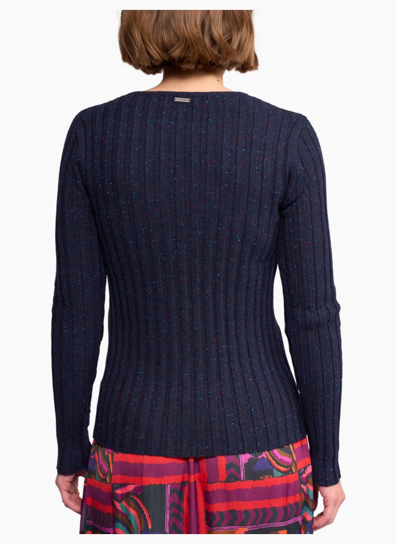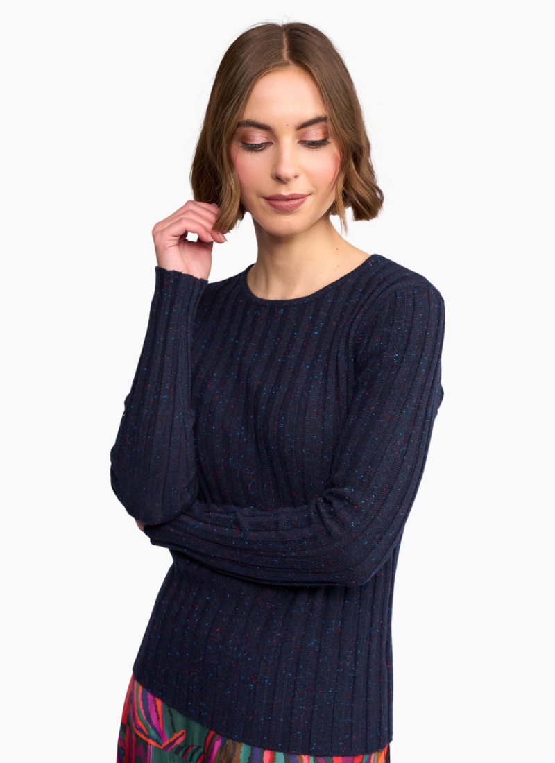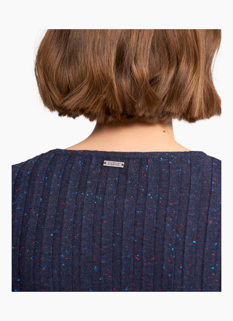 Long sleeve, wide ribbed knit in Navy Fleck, a dark blue base with red and light blue flecks. Featuring a slim fit, perfect for tucking in.• Wide ribbed, slim fit knit • Long sleeves • Round neckline with metal 'KNEWE' brand plate at centre back • Model wears size 10