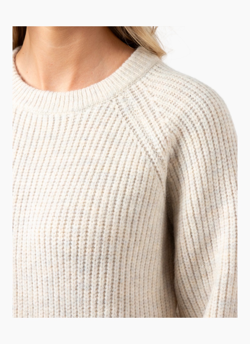 Fisherman rib knit with crew neckline and raglan sleeve.