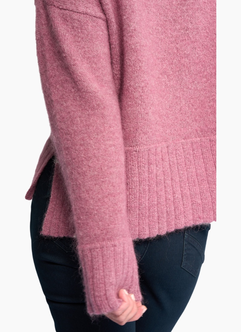 A soft, cosy sweater in our Port shade — a rich purple-pink tone. Made with a blend that includes wool and mohair for warmth, this relaxed-fit knit features drop-shoulder sleeves, a high-low hem with side splits, and ribbed detailing at the neckline, cuffs, and hem for a comfortable, easy silhouette.