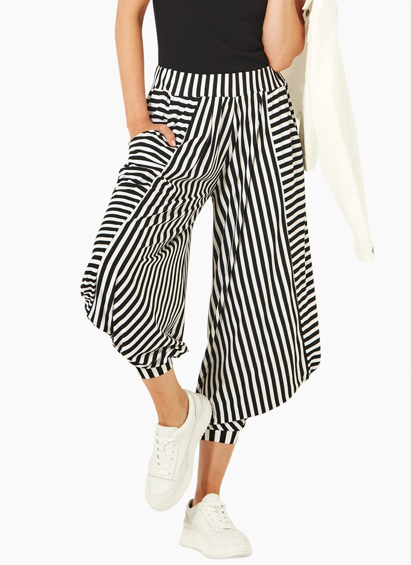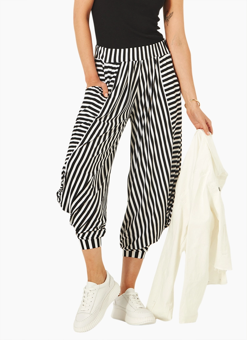 If you’re looking for a bold pant that’s as stylish as it is comfy, the Lenka Pant is for you! Featuring designer stripes and made from viscose and elastane they are ultra soft and comfortable. With practical pockets, cut into a loose fit, featuring an elasticated cuff and waistband for easy everyday wear.