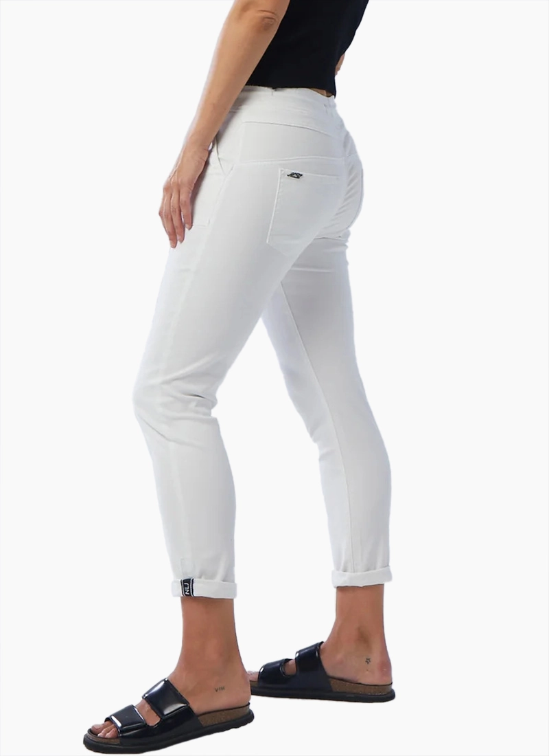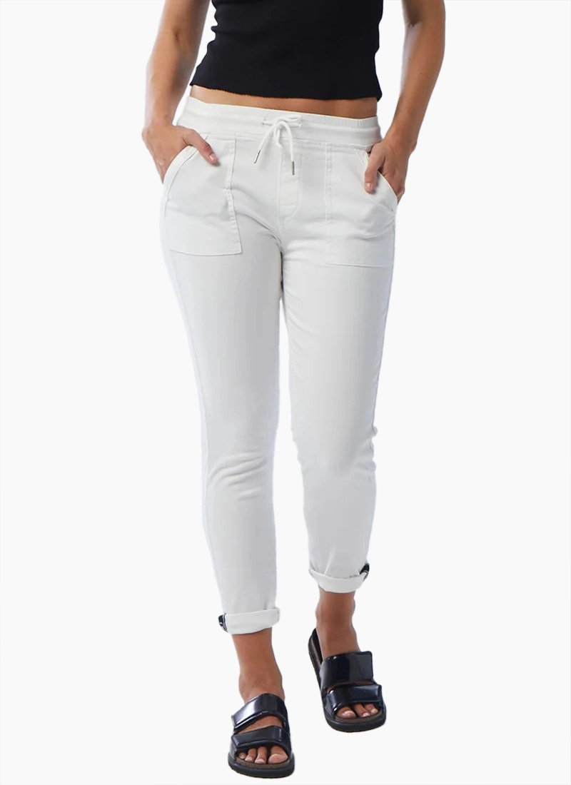 - Mid-rise jogger roll cuff jean