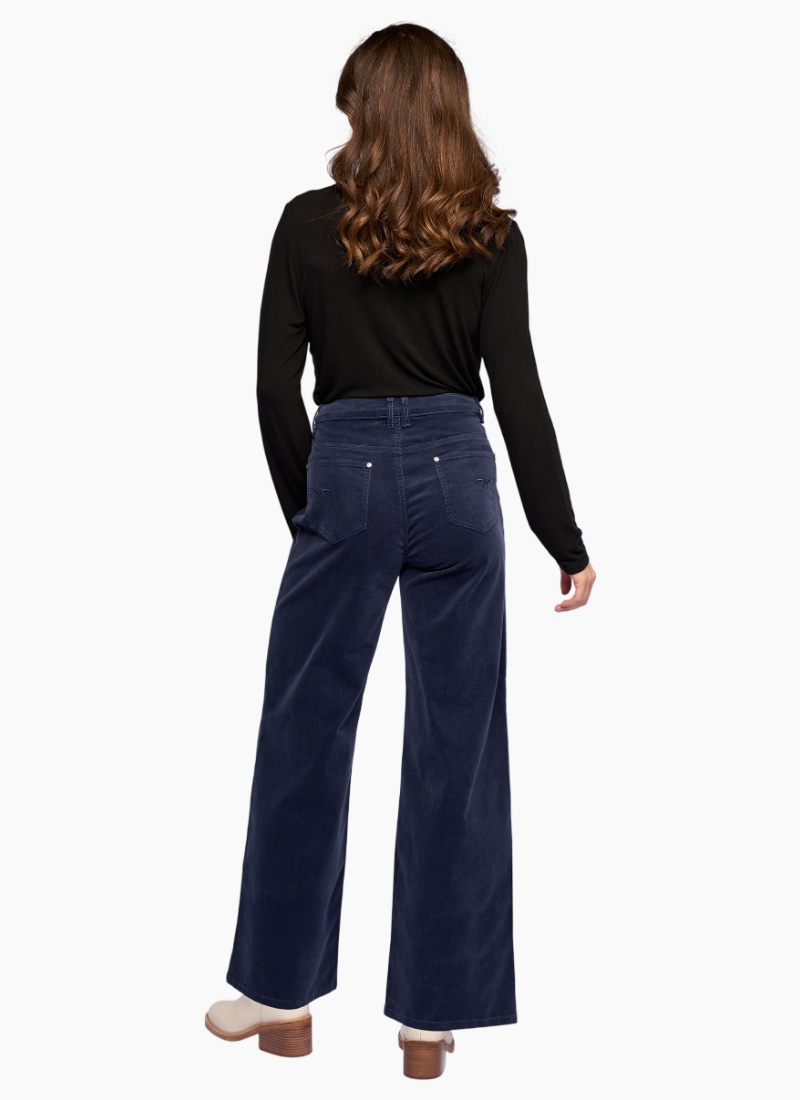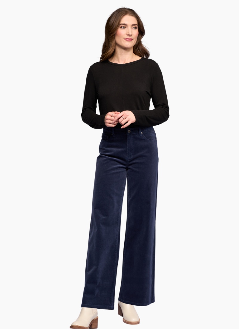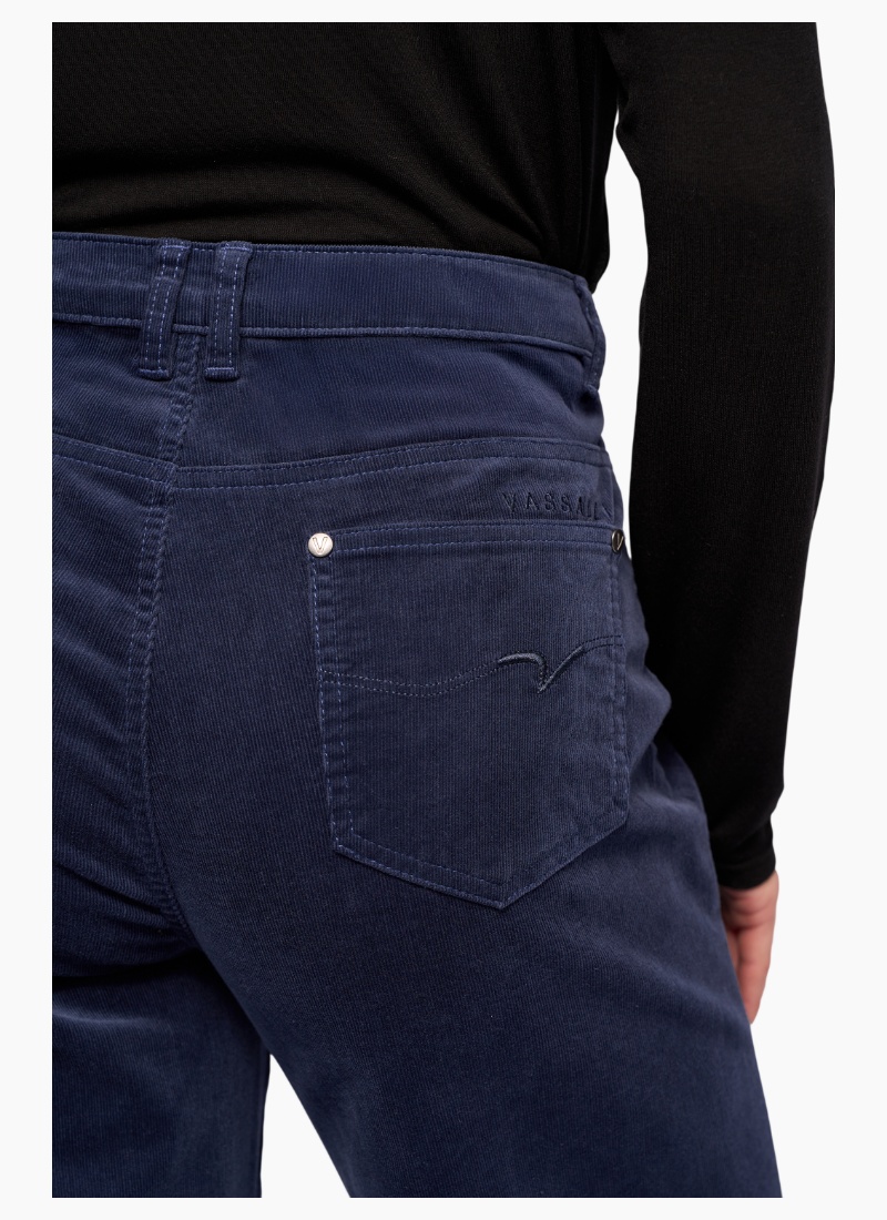 Wide-leg full-length pant in soft corduroy, designed in our Slate shade — a deep, versatile dark grey. Crafted in a warm, winter-ready fabric, this style offers a relaxed yet polished look, with a flattering drape• Wide leg, full length pinwale cord pant • Warm winter-weight feel • Button and zip fly fastening • Silver button with ‘V’ Vassalli logo • Two front slash pockets with coin pocket • Two back patch pockets with 'V' stitching detail • 'Vassalli' embroidery above wearers right-hand back pocket • Model wears size 10