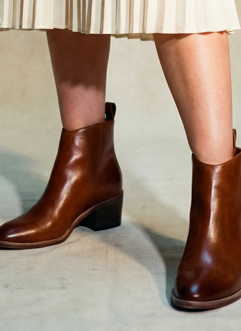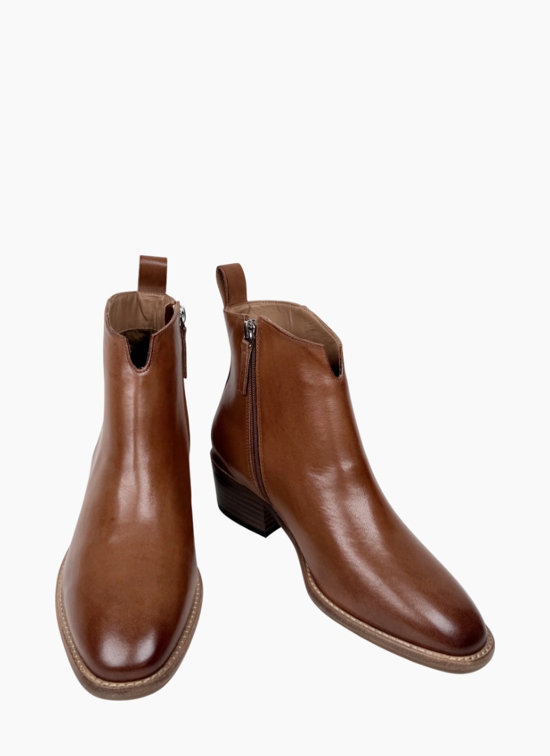 A classic ankle boot with a comfortable stacked block heel, pull tab detail and zip entry