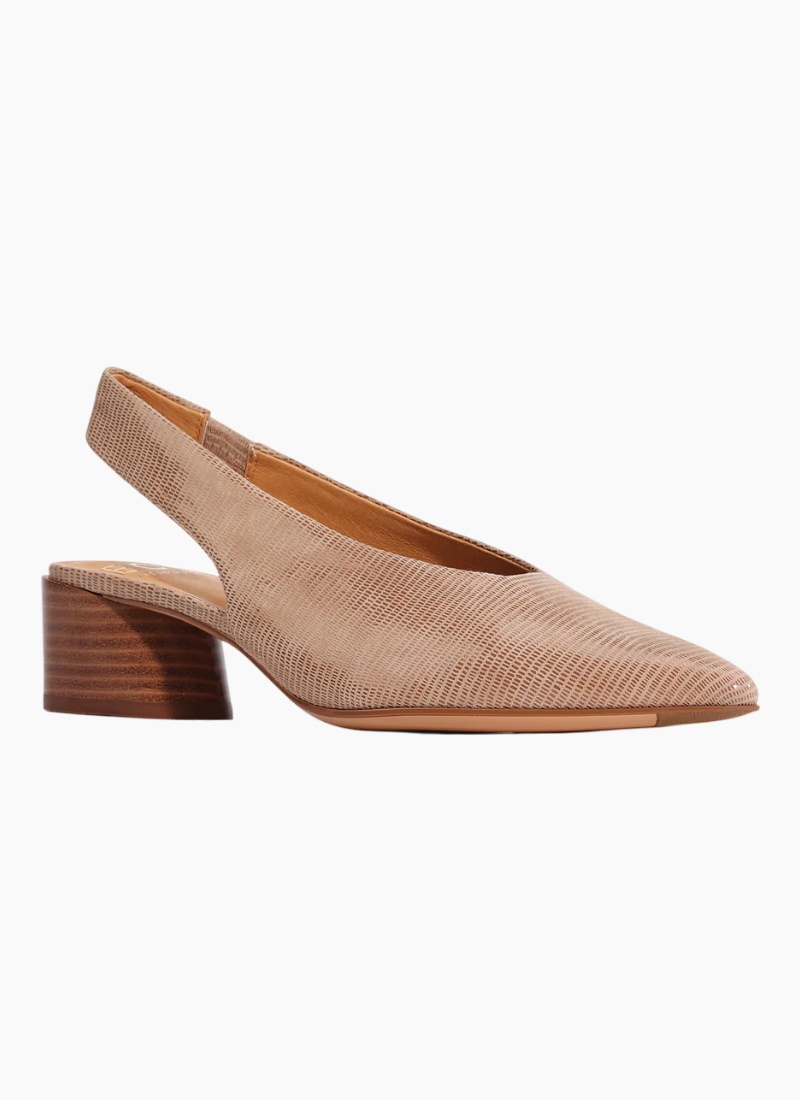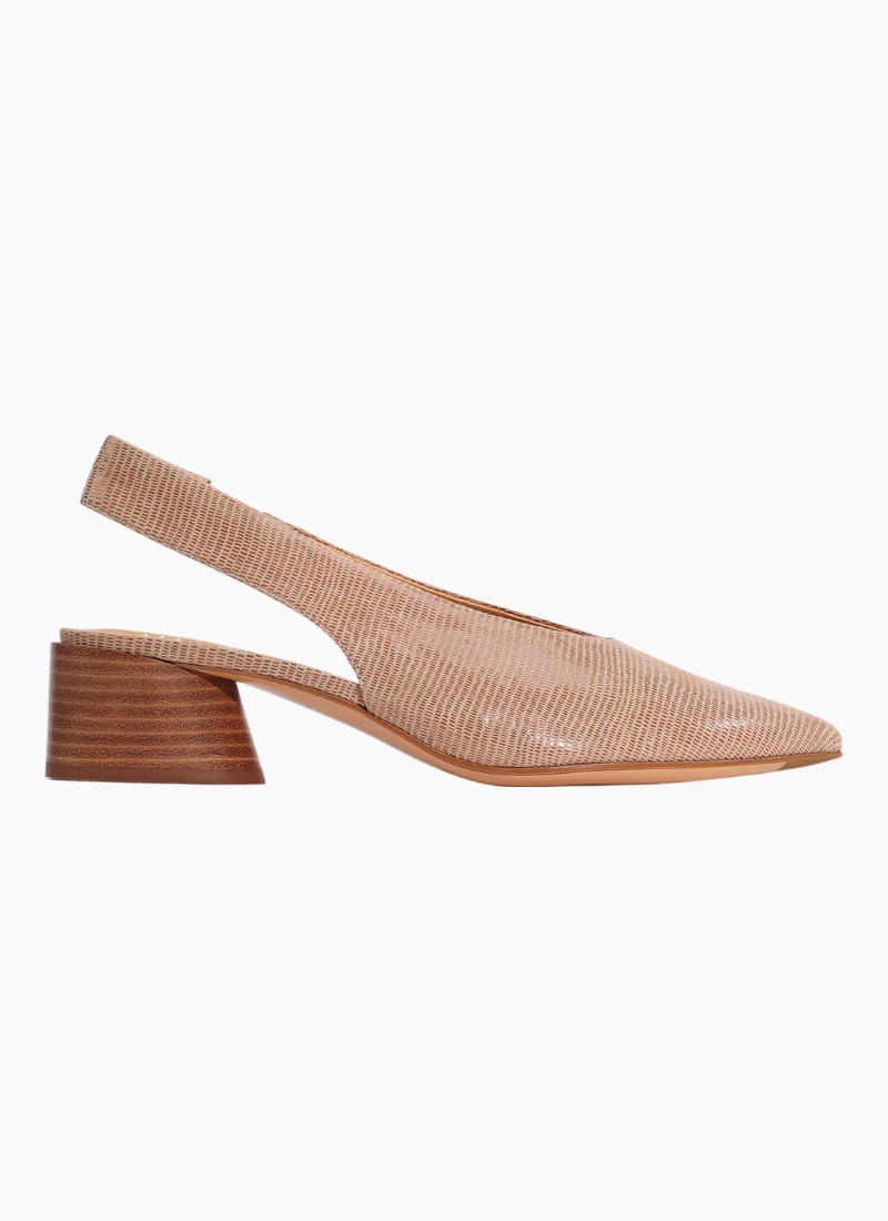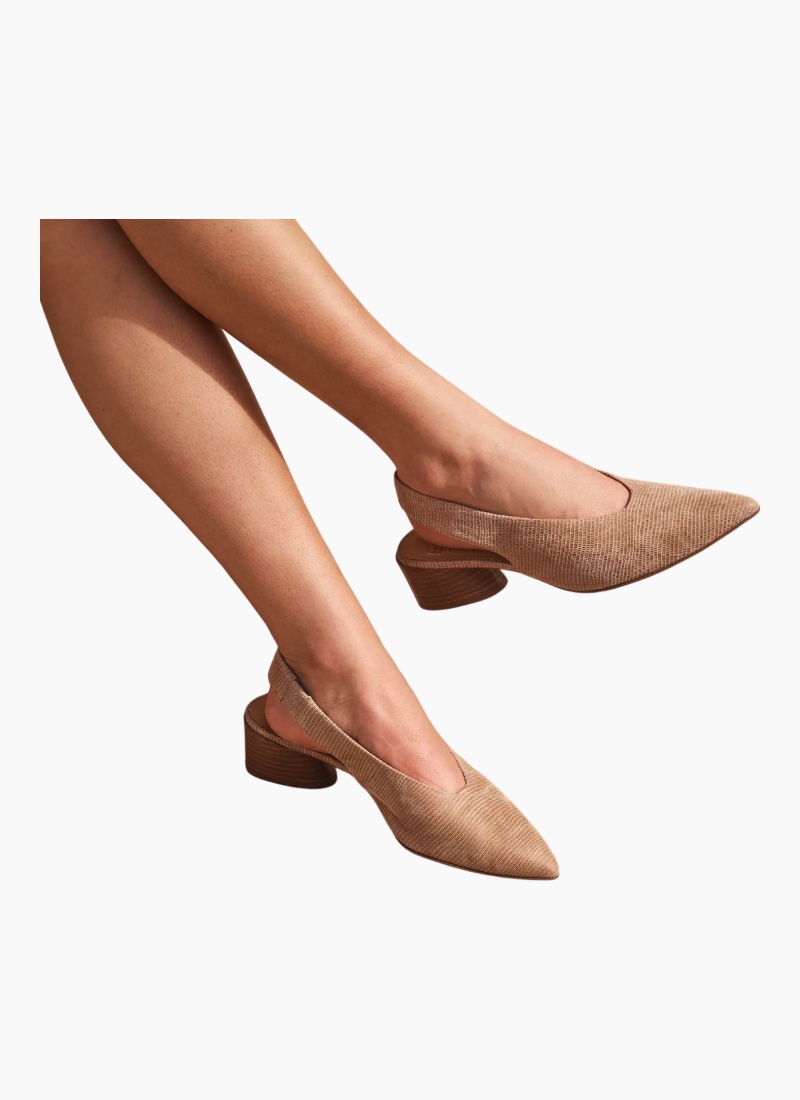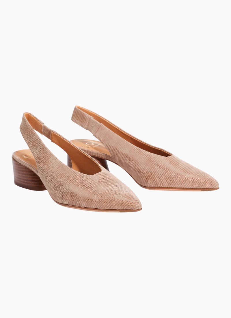 Step into timeless sophistication with the EOS Hatti Slingbacks. Crafted from premium soft textured leather these flats feature a pointed toe and a comfortable mid-height block heel, offering both style and stability. Good toe coverage.