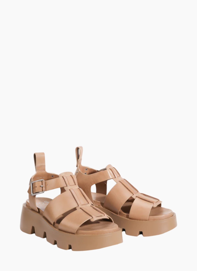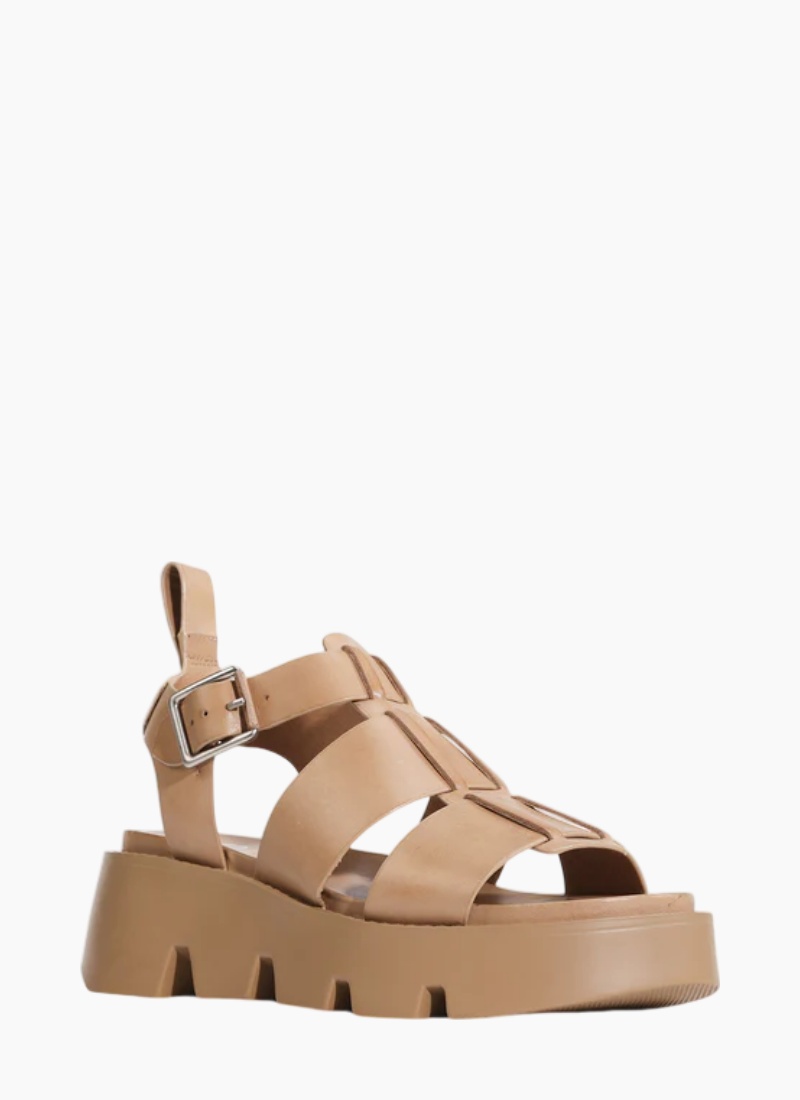 Introducing the KAILAN sandal from EOS. This tan leather sandal combines modern chunky style with day-to-day comfort and polish.