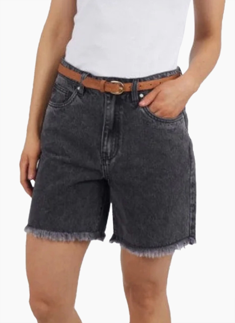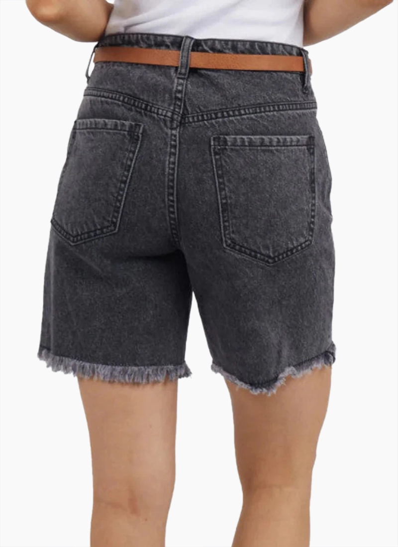 The Millie Shorts in washed black is your classic short featuring a frayed hem and slight distressing at the pocket. These will be on high rotation this coming summer!!