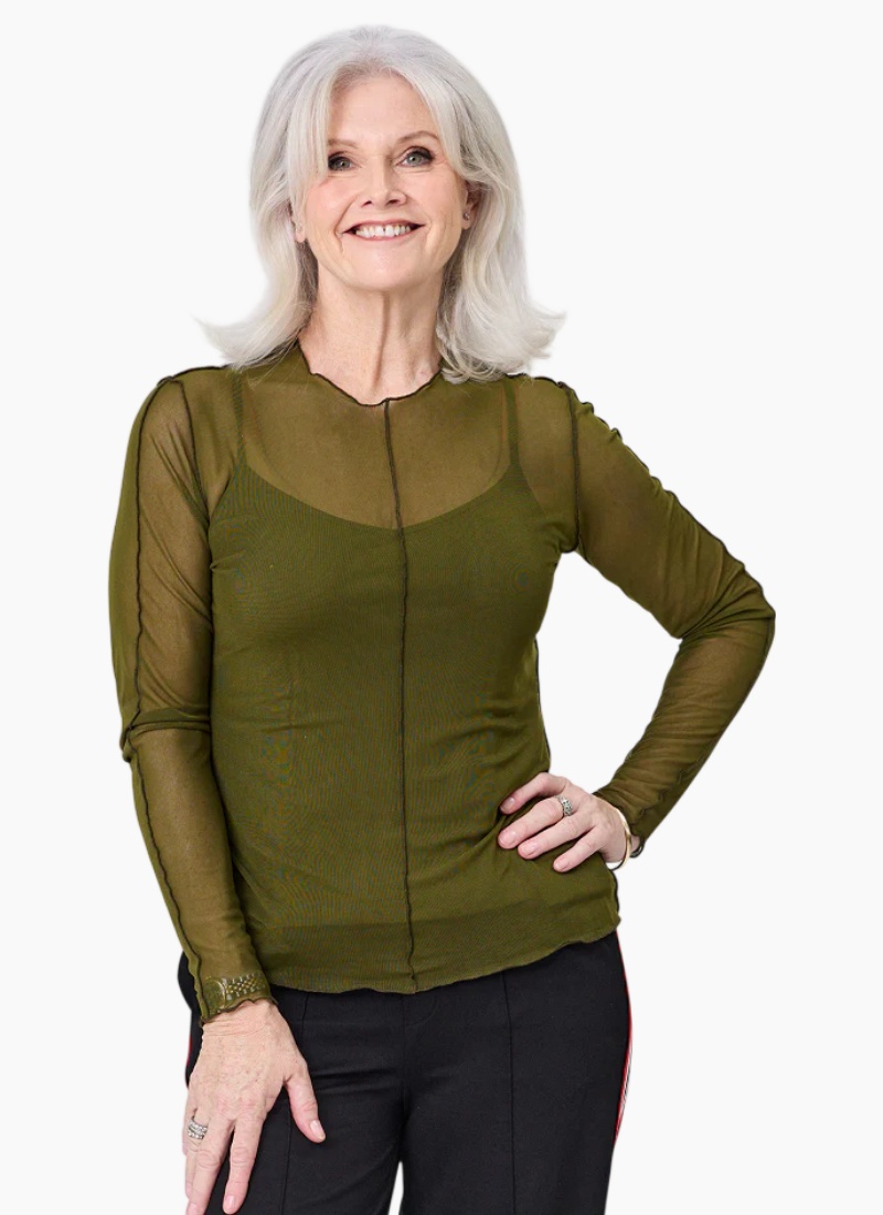 This set features a sheer mesh long-sleeve top worn over a matching viscose singlet. • Long sleeved, all seams are baby-locked and exposed for a quirky touch. • Made from a blend of Polyester, Elastane.
