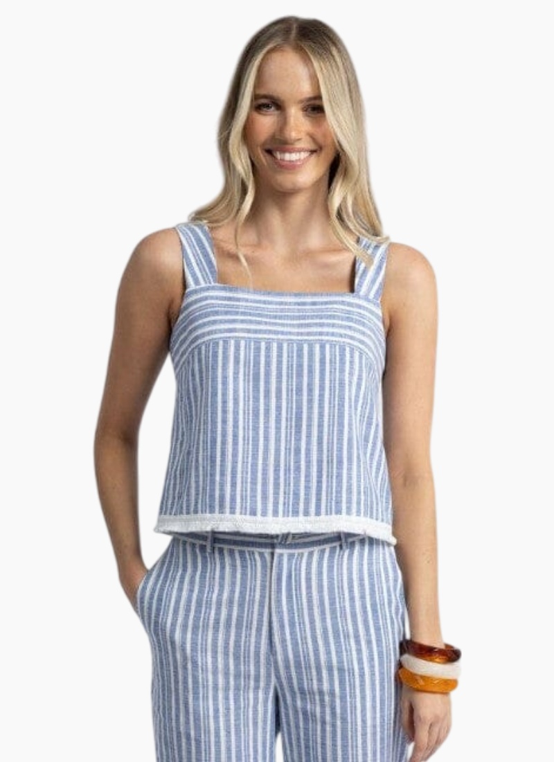 Introducing the CAPRI TOP from Humidity. This breezy, striped tank delivers relaxed summer elegance with a clean square neckline and wide straps.
