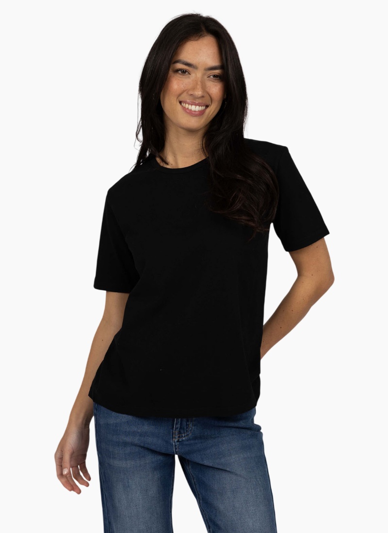 - Classic crew neckline and short sleeves offer a versatile, relaxed silhouette perfect for casual dressing